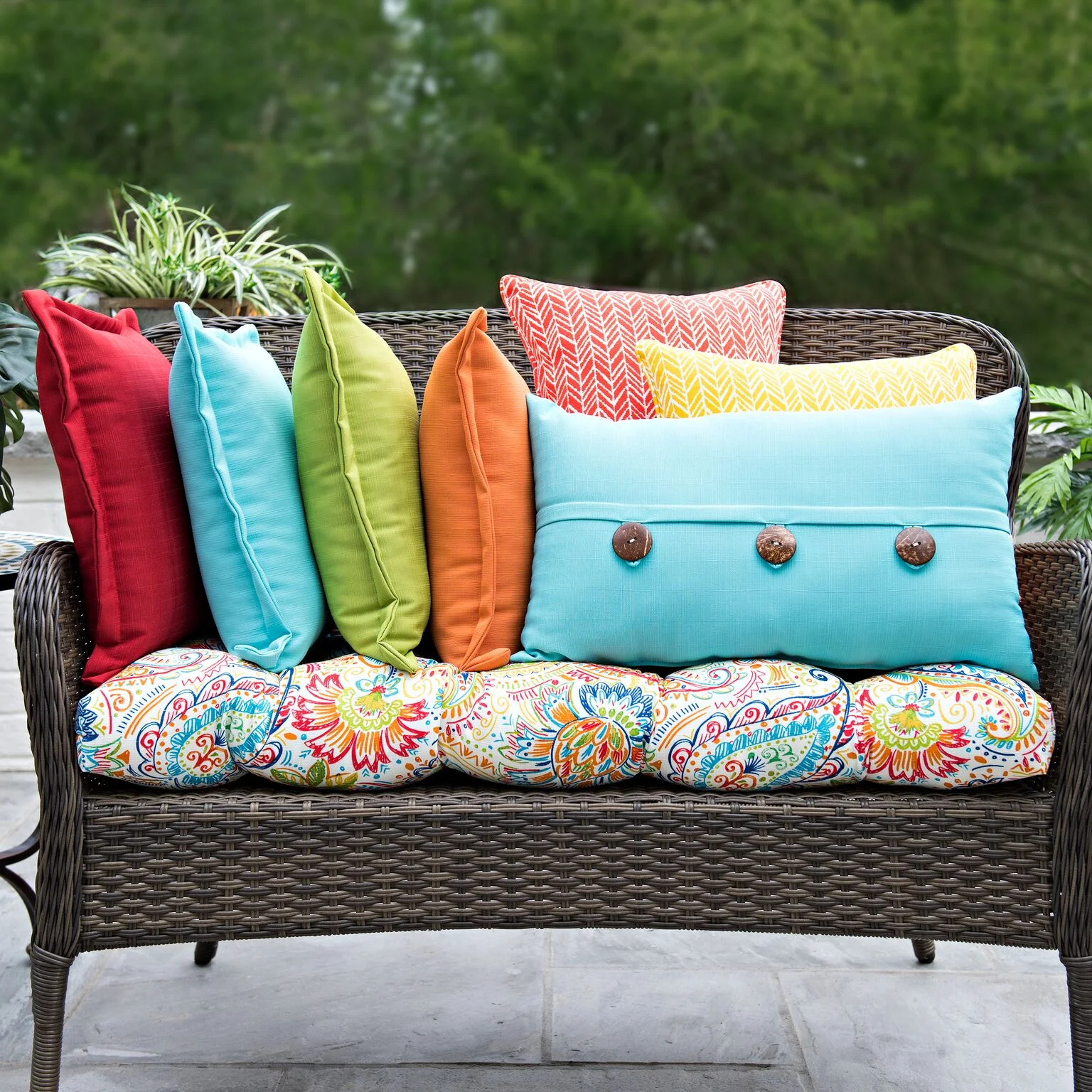 We just mentioned mixing in fun colors of summer, and there’s no better way to do that than with your cushions and pillows. Feel free to experiment with bright colors and exciting patterns. The right cushions and pillows will warm up your patio in a hurry!